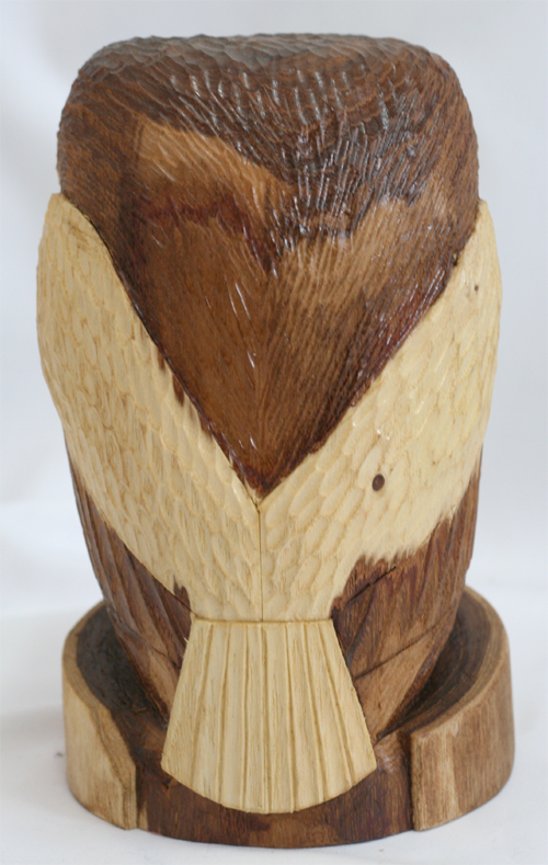 斉藤氏による槐(えんじゅ)の木の木彫りふくろうです。