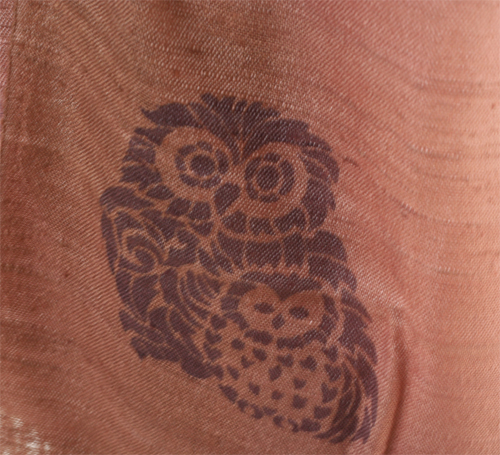 なんともいえない色合いに、ふくろうが染め抜かれています。